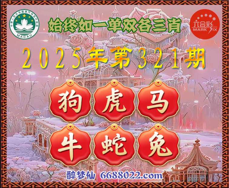 321期:《始终如一》 🤩单双各三肖🤩【狗.虎.马.牛.蛇.兔】开:羊23错