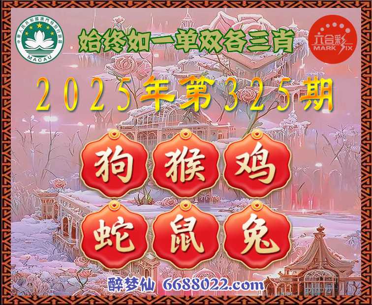 325期:《始终如一》 🤩单双各三肖🤩【狗.猴.鸡.蛇.鼠.兔】开:虎04错