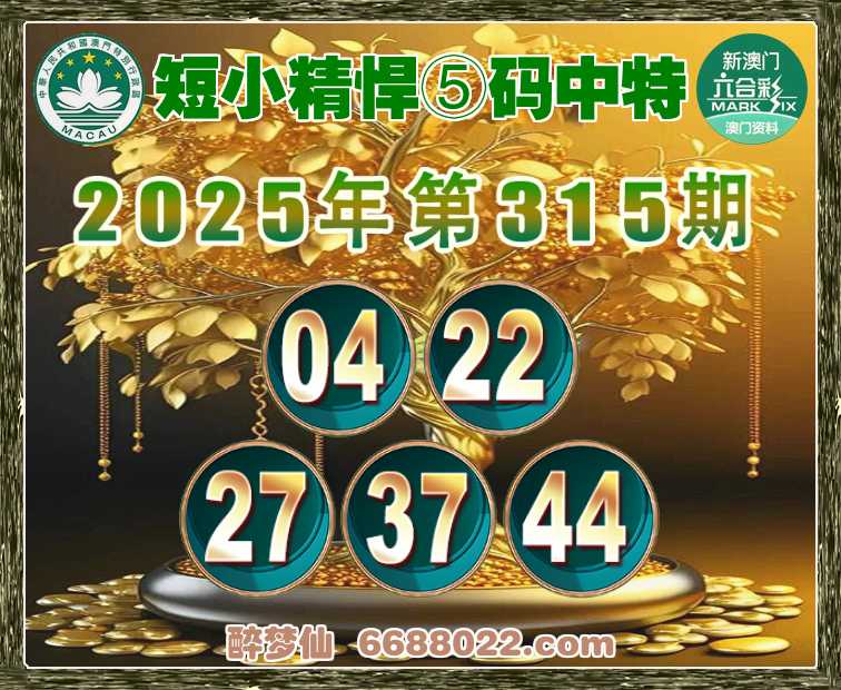 315期:〖短小精悍〗 🚡⑤码中特🚡【04.22.27.37.44】开:04准