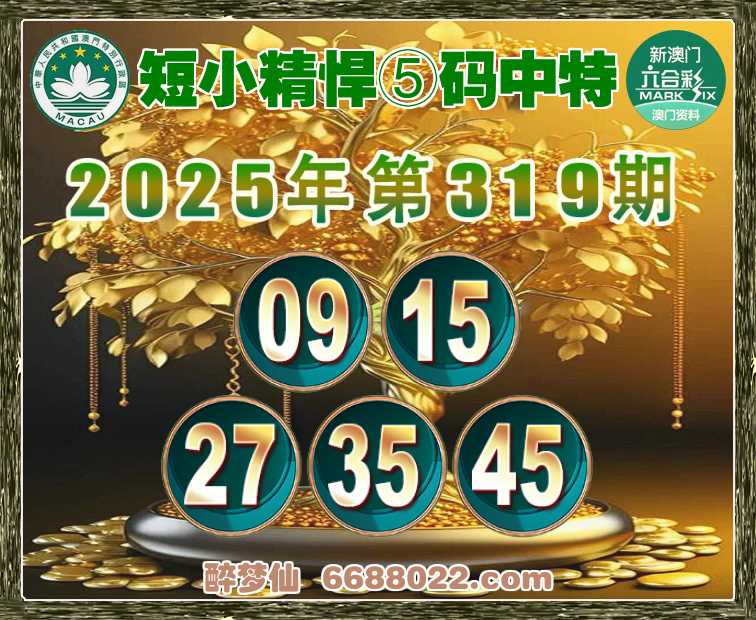 319期:〖短小精悍〗 🚡⑤码中特🚡【09.15.27.35.45】开:45准上榜高手