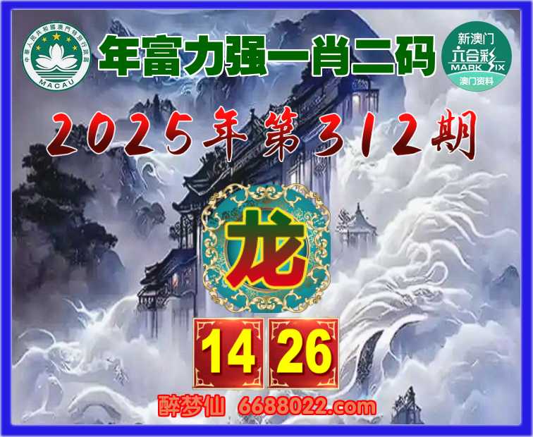 312期:《年富力强》 👈一肖二码👈【】【14.26】开:龙14