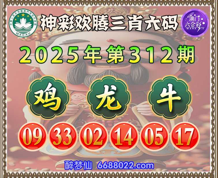 312期:【神彩欢腾】 💎三肖六码💎【鸡龙牛】开:龙14准