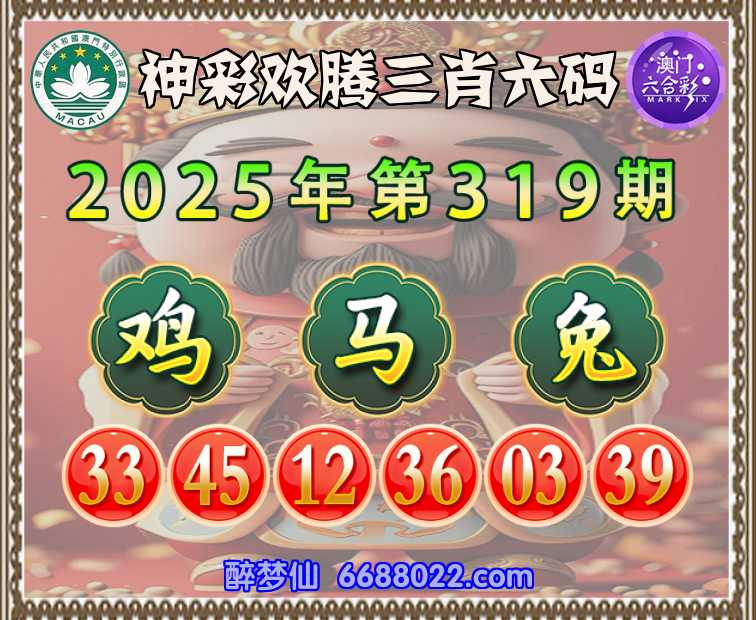 319期:【神彩欢腾】 💎三肖六码💎【鸡马兔】开:鸡45准