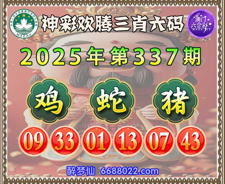 337期:【神彩欢腾】 💎三肖六码💎【鸡蛇猪】开:鸡09准上榜高手