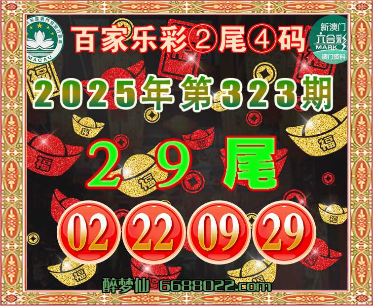 323期:『百家乐彩』 🧩②尾④码🧩【29尾主:02.22.09.29】开:09准