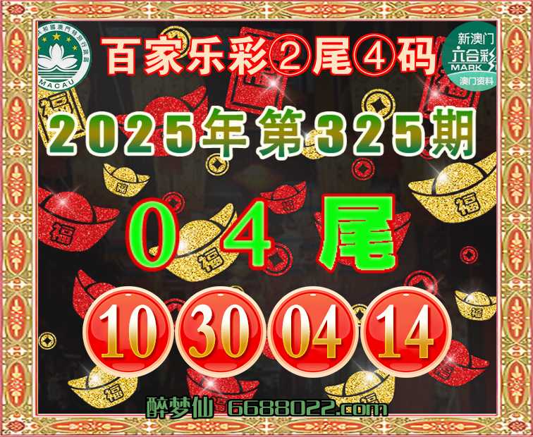 325期:『百家乐彩』 🧩②尾④码🧩【04尾主:10.30.04.14】开:04准
