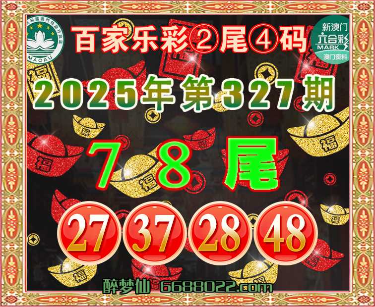 327期:『百家乐彩』 🧩②尾④码🧩【78尾主:27.37.28.48】开:37准