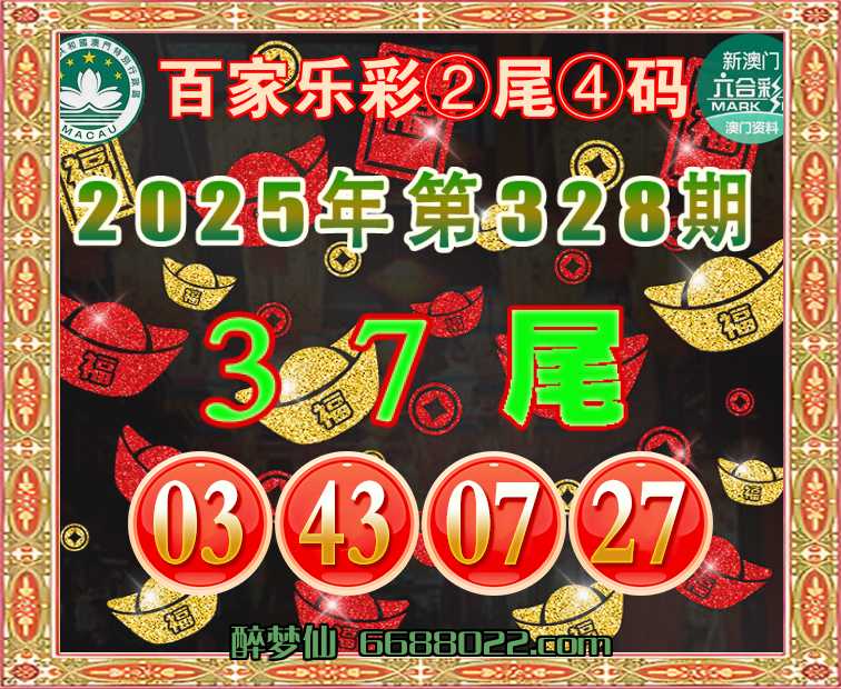328期:『百家乐彩』 🧩②尾④码🧩【37尾主:03.43.07.27】开:03准