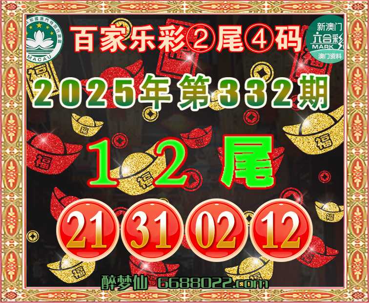 332期:『百家乐彩』 🧩②尾④码🧩【12尾主:21.31.02.12】开:26错