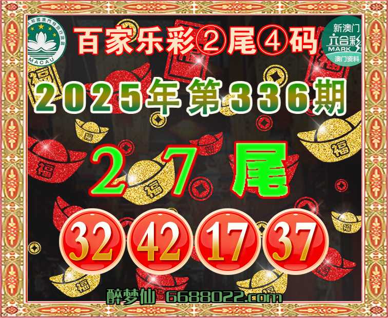 336期:『百家乐彩』 🧩②尾④码🧩【27尾主:32.42.17.37】开:17准