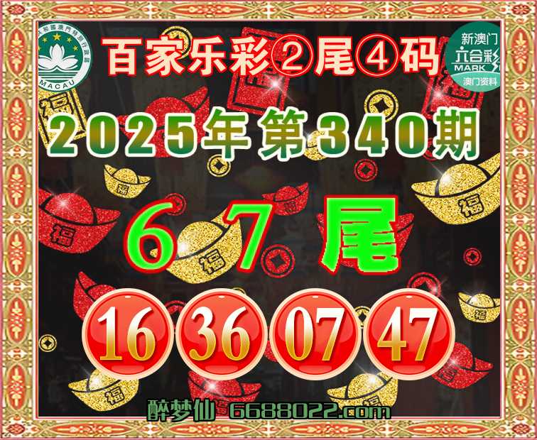 340期:『百家乐彩』 🧩②尾④码🧩【67尾主:16.36.07.47】开:16准